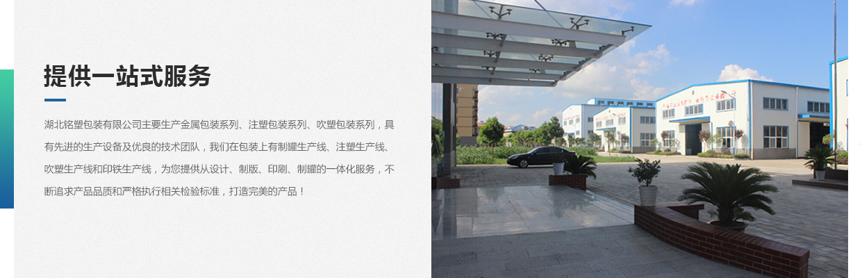 湖北銘塑包裝有限公司一家集研發(fā)、生產(chǎn)、銷(xiāo)售于一體的較優(yōu)秀民營(yíng)企業(yè),技術(shù)力量雄厚,產(chǎn)品質(zhì)量可靠。位于交通暢順,百業(yè)興旺、經(jīng)濟(jì)富裕、政策開(kāi)放的孝感開(kāi)發(fā)區(qū)域。我們企業(yè)的營(yíng)銷(xiāo)戰(zhàn)略是以建筑為土壤,以產(chǎn)品為種子,以質(zhì)量為肥料,讓綠色鋪滿(mǎn)全球。憑借多年來(lái)的行業(yè)經(jīng)驗(yàn),公司不斷進(jìn)行創(chuàng)新和研發(fā),為市場(chǎng)提供更廣泛的產(chǎn)品應(yīng)用領(lǐng)域和更好環(huán)保節(jié)能產(chǎn)品,為國(guó)家能源環(huán)保戰(zhàn)略和可持續(xù)發(fā)展戰(zhàn)略作出應(yīng)有的貢獻(xiàn)。 湖北銘塑包裝有限公司主要生產(chǎn)金屬包裝系列、注塑包裝系列、吹塑包裝系列,具有先進(jìn)的生產(chǎn)設(shè)備及優(yōu)良的技術(shù)團(tuán)隊(duì),我們?cè)诎b上有制罐生產(chǎn)線、注塑生產(chǎn)線、吹塑生產(chǎn)線和印鐵生產(chǎn)線,為您提供從設(shè)計(jì)、制版、印刷、制罐的一體化服務(wù),不斷追求產(chǎn)品品質(zhì)和嚴(yán)格執(zhí)行相關(guān)檢驗(yàn)標(biāo)準(zhǔn),打造更好的產(chǎn)品!